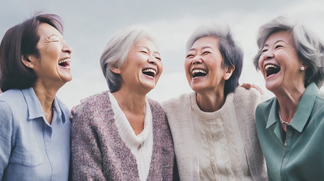 人生色々あるけれど、いつまでも気心知れた仲間との何気ない会話や、笑いあえる時間があることは、かけがいのない“幸せ”です。たとえ会話が聴こえにくくなっても、“みみ楽”のボイスレシーバー(集音器)を身につければ、一人ひとり異なる耳の聴こえに調整し、会話を聴き取りやすくサポートします。