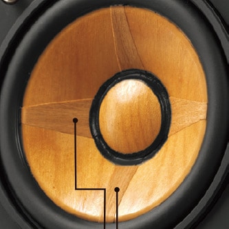 理想的な木の音響特性を持つ振動板「フルレンジウッドコーン」により、