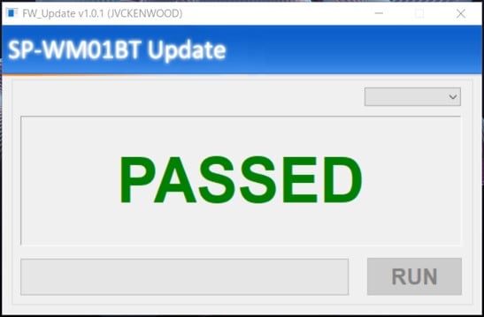 14. アップデートツールソフト画面右下の「RUN」をクリックします。