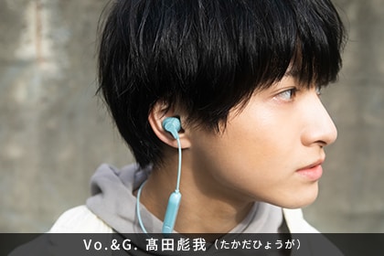 (彪我)耳に掛けるタイプのワイヤードのイヤホンを使っています。どちらかというと、ワイヤードのほうが音質がいいのかなという話を聞いていたので、今までワイヤードを使っていたんですけど。今回、このイヤホンで聴いてみて、やっぱりワイヤレスもいいですね。めちゃくちゃ良かったです!(笑) 曲は普段はバンドものをよく聴くんですけど、サイダーガールさんとか、ASIAN KUNG-FU GENERATIONさん、BUMP OF CHICKENさんとかそういうロックバンド系を聴いたり、あとはボカロ系の音楽も聴いたりします。