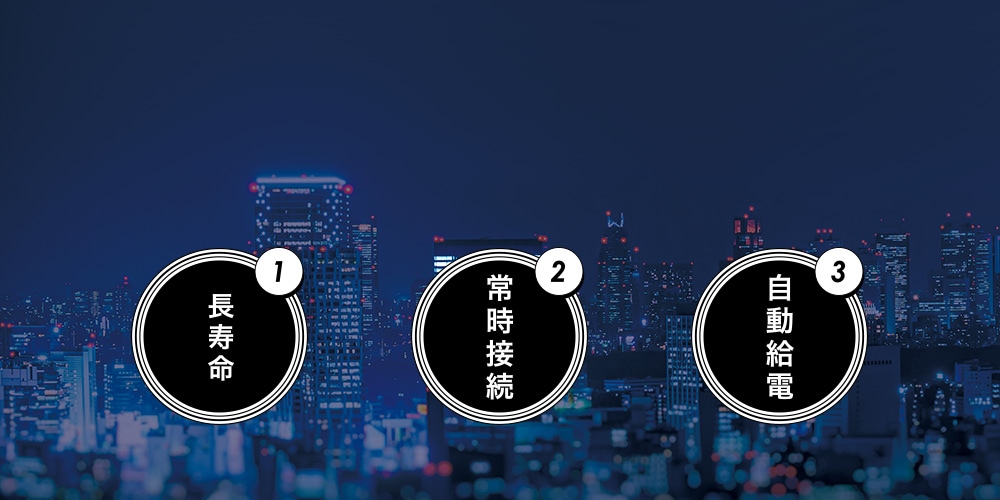 リン酸鉄系リチウムイオン充電池採用で、 充放電サイクルの長寿命化を実現しました。