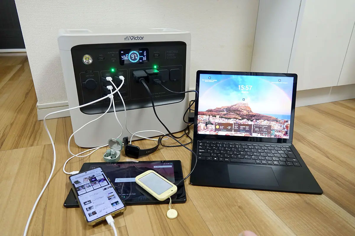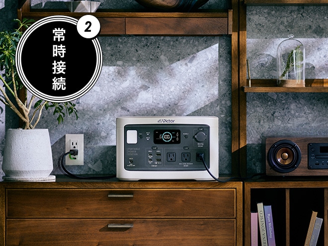 常時電力が必要なものや、タイマーセットしている家電にポータブル電源を