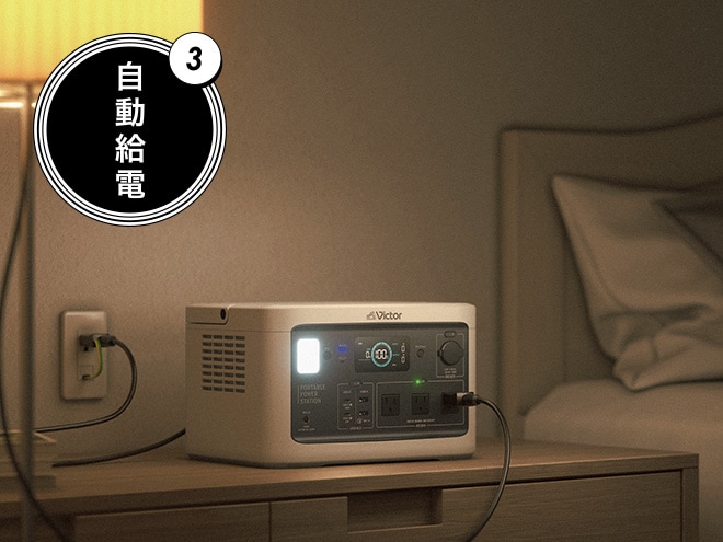 停電時でも自動的にポータブル電源がバックアップします。※6