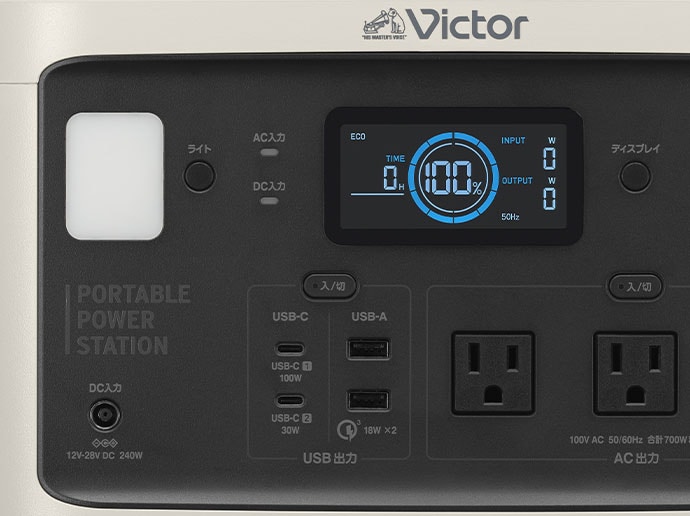 | AC出力 | 【AC×3】 100V AC 7A 50/60Hz 合計700W(瞬間最大1,400W) |