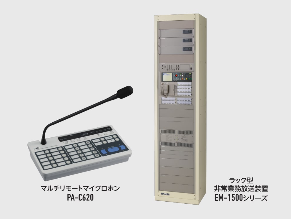 接点・リレーでの制御に加え、マルチリモートマイクロホンPA-C620とのシリアル通信による制御が可能となり、省線化と操作性向上に寄与します。さらに、ラック型非常業務放送装置EM-1500シリーズとPA-C620間のシリアル通信をネットワーク伝送する機能を搭載しています。