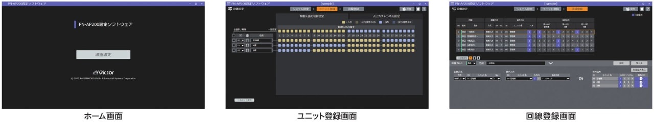 放送回線の登録、制御入出力割り当て、優先順位の設定などを簡単に行うことができます。デスクトップアプリのため、オフラインでシステムの検討・設定が可能です。