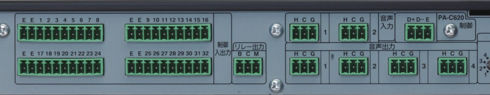 音声入出力端子は不平衡(RCAピンジャック)から平衡(コネクター端子台)に変更。計32個の制御入出力端子は個別に入力/出力に割り当てられます。