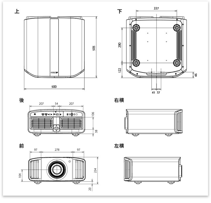| レンズシフト(電動、16:9投写時) | 上下±100%、左右±43% | 上下±80%、左右±34% | 上下±70%、左右±28% | ||