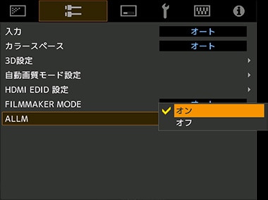 ※「ALLM」機能動作時は、快適な操作性を実現するため、「Frame Adapt HDR」「レーザーダイナミックコントロール」「Clear Motion Drive」などの一部機能は自動的に OFF になります。