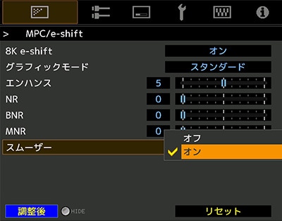 当社独自の高画質映像処理技術「Multiple Pixel Control(MPC)」の「スタンダード」モードを大幅に見直し、より自然でリアルな画作りを実現しました。また新たに「スムーザー」機能を追加。映像データ圧縮などによって生じるバンディングノイズを効果的に抑制し、ナチュラルな高精細感を維持したまま、より滑らかでリアルな8K 映像表現を可能にしました。微細なディテールや階調表現が求められる映像においても、視覚的な違和感を軽減し、映像体験の質を一層高めています。