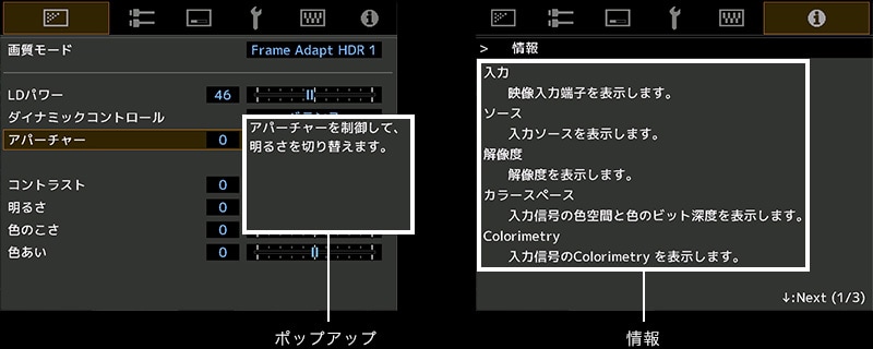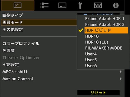 暗い映像やHDRコンテンツの再生時でもメニューが見やすくなり、視認性が向上します。