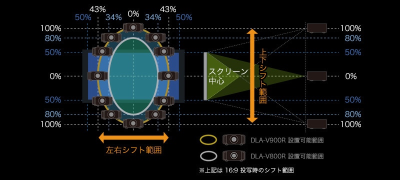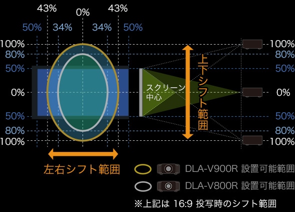 DLA-V900Rはネイティブコントラスト比150,000:1を達成、DLA-V800Rは100,000:1を実現します。